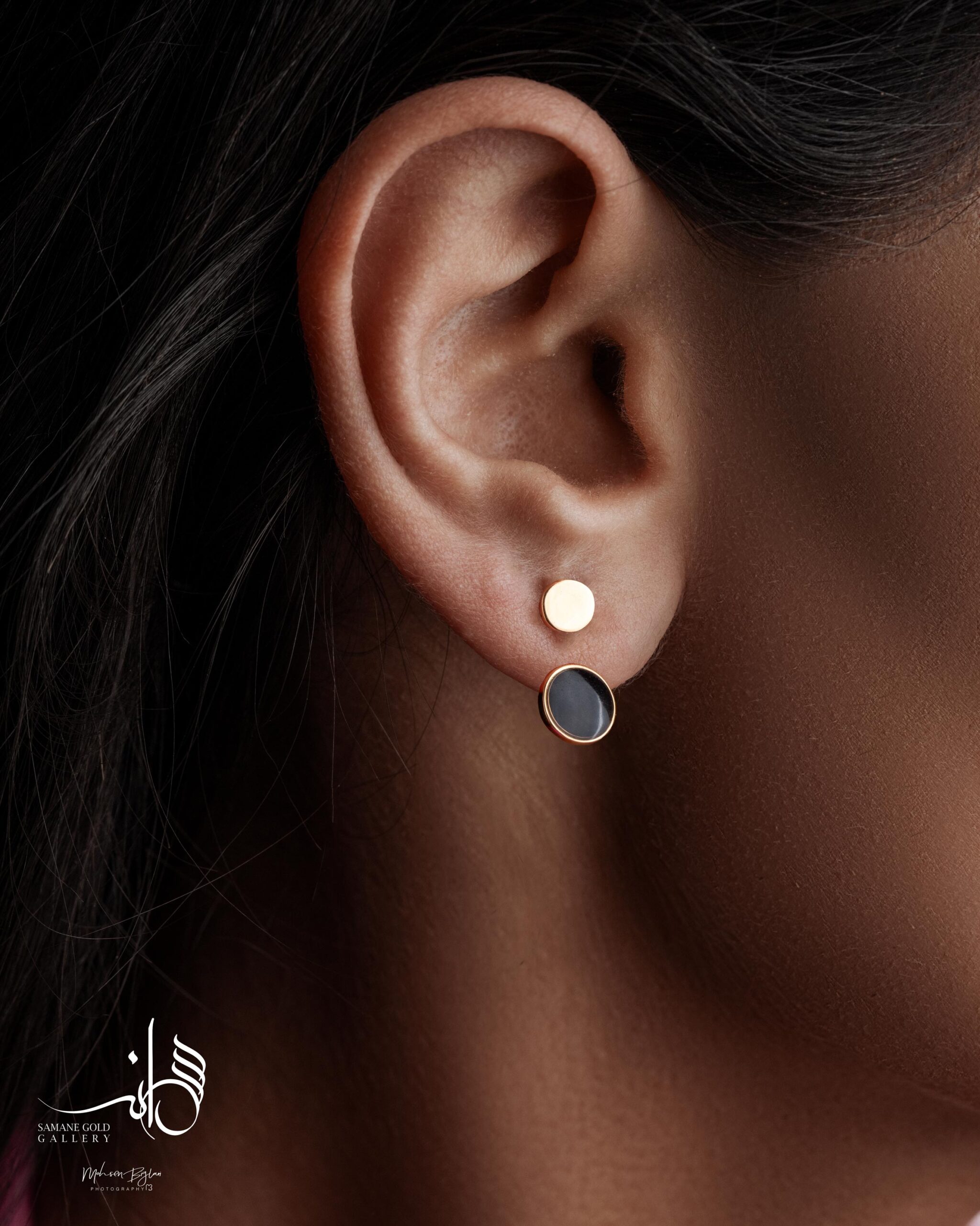 گوشواره میخی دات زیرورو مینا مشکی