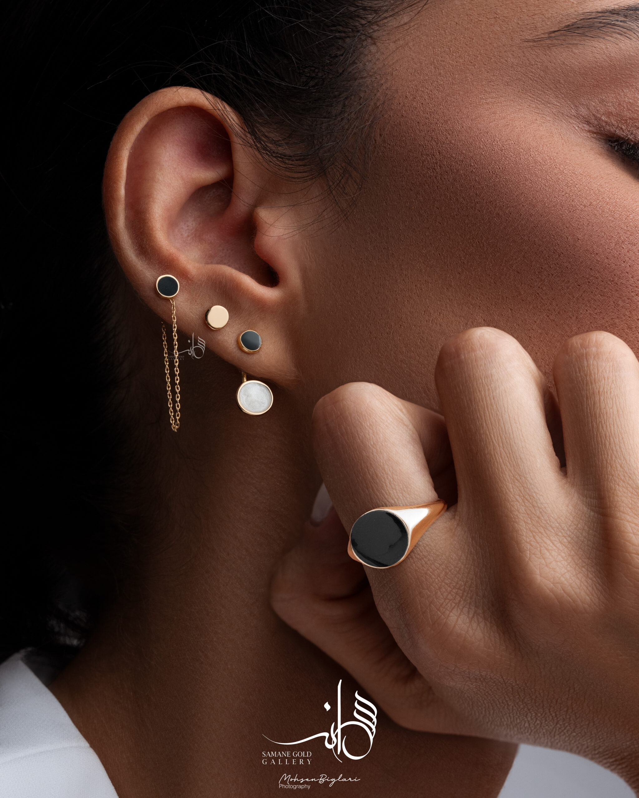 گوشواره میخی دایره میناکاری مشکی زنجیری
